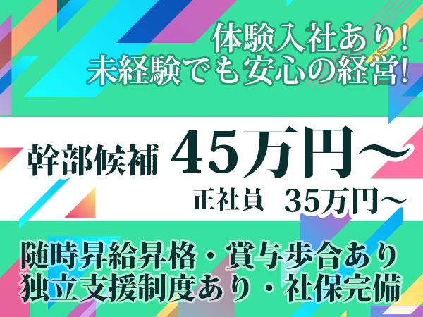 | 職場構成の補足 | ノルマ、営業の強制、罰金なし。女の子が自然体で働ける環境を用意しました♪ | |||||||||||||||||||||