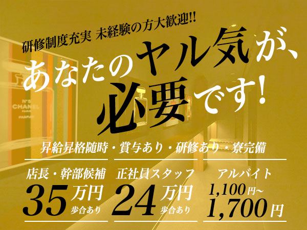 3,500円 ■体入時給3,500円~■入店時給3,500円~ 時給3,500円~+各種バック 時給の制限はないので、頑張る方は時給10,000円以上も可能です。 研修制度があるので、未経験から始めても、半年で時給が倍になった女の子もいます。 |