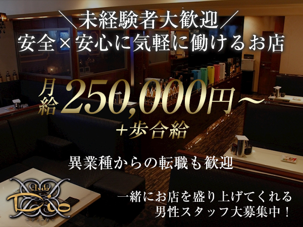 ○お客様へ笑顔でご挨拶♪ ○簡単なお酒を作ってご提供♪ ○楽しい会話で盛り上げる♪ ○笑顔でお見送り♪ 『Dio -ディーオ-』でのお仕事で難しいことは一切ありません! すぐ覚えられることばかりなので、初心者さん、未経験者さんでも安心して働けます! 一緒に働けることを楽しみにしております☆ |