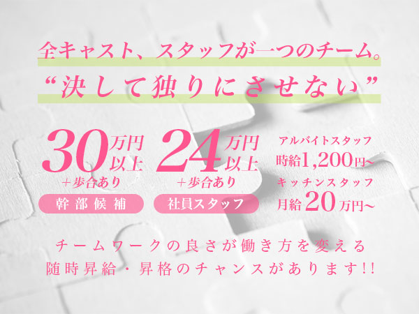 18歳以上(高校生不可) ・未経験の方もぜんぜんOK ・経験者の方優遇 ・学生さん、OLさんWワーク応援! ・お酒が苦手でも大丈夫! ・お友達と一緒に体入OK ・履歴書不要 |