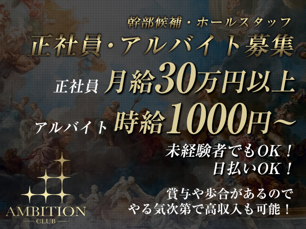 4,000円 体入時給4,000円~========== 入店時給4,500円~ ※各種バックあり(指名、同伴、ボトルなどの各種高額バックあり) |