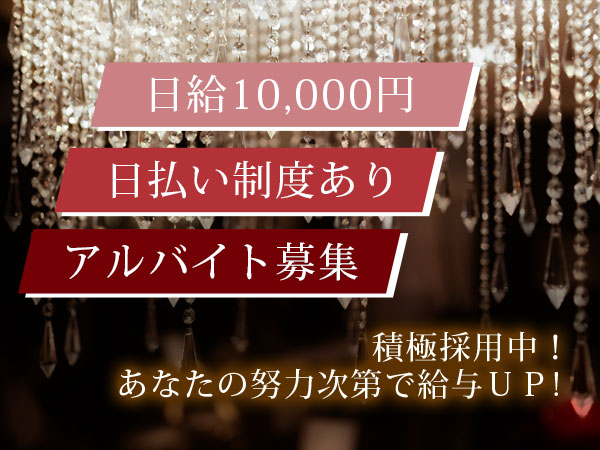 2,000円 体験時給:2,000円本入時給:2,000円〜 ☆本入店後も日払いOK ▼==================▼ ・お給料から税金カットなし ・各種バックあり ・お友達と一緒のご応募OK ・ボーナスあり ・レンタル衣装あり(ドレス・スーツ) ・年齢問わず大歓迎 ・OLさん・主婦の方・フリーター・シングルマザーさん大歓迎 ・ブランクがあってもOK ・ダブルワークOK ・お酒が飲めなくてもOK(ソフトドリンクあり) ・上下関係・派閥一切なし ・強制入店、強制出勤一切なし ・髪型・髪色・ネイル自由 ・ヘアセット自由 |