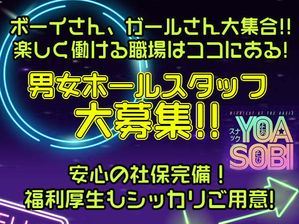 当店は、スナックなのでキャバクラのようなギスギスした感じは全くなく自分のペースで働ける居心地の良さバツグンなお店です。 経験は一切問いませんので、週1日から短時間でも働き方は自由自在!Wワークでのバイトも大歓迎ですので一緒にお店を盛り上げてくれる方大募集中です! |