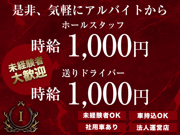 3,000円 体入時給/3,000円入店時給/2,000円~ ===== ===== 【体験入店】 時給3,000円で、全額日払い♪ 【入店後】 ※お給料は基本日払い(相談可能) 各種バックには、ドリンク・シャンパン・同伴・会計バックなど稼げるがシステム満載! |